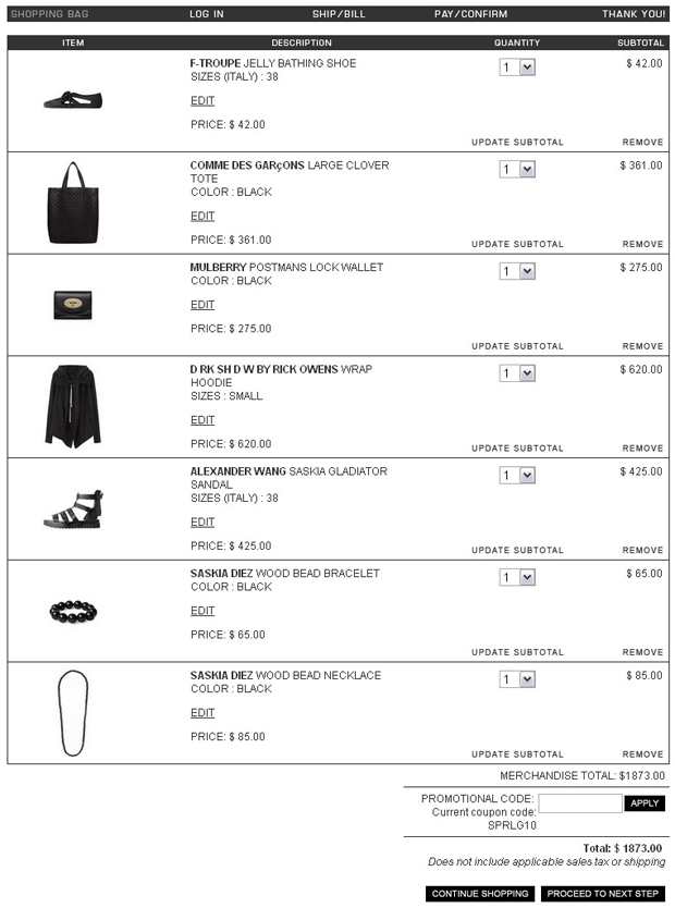 就是連圖都懶的作了!直接把La Garconne的購物車快照貼上來!!